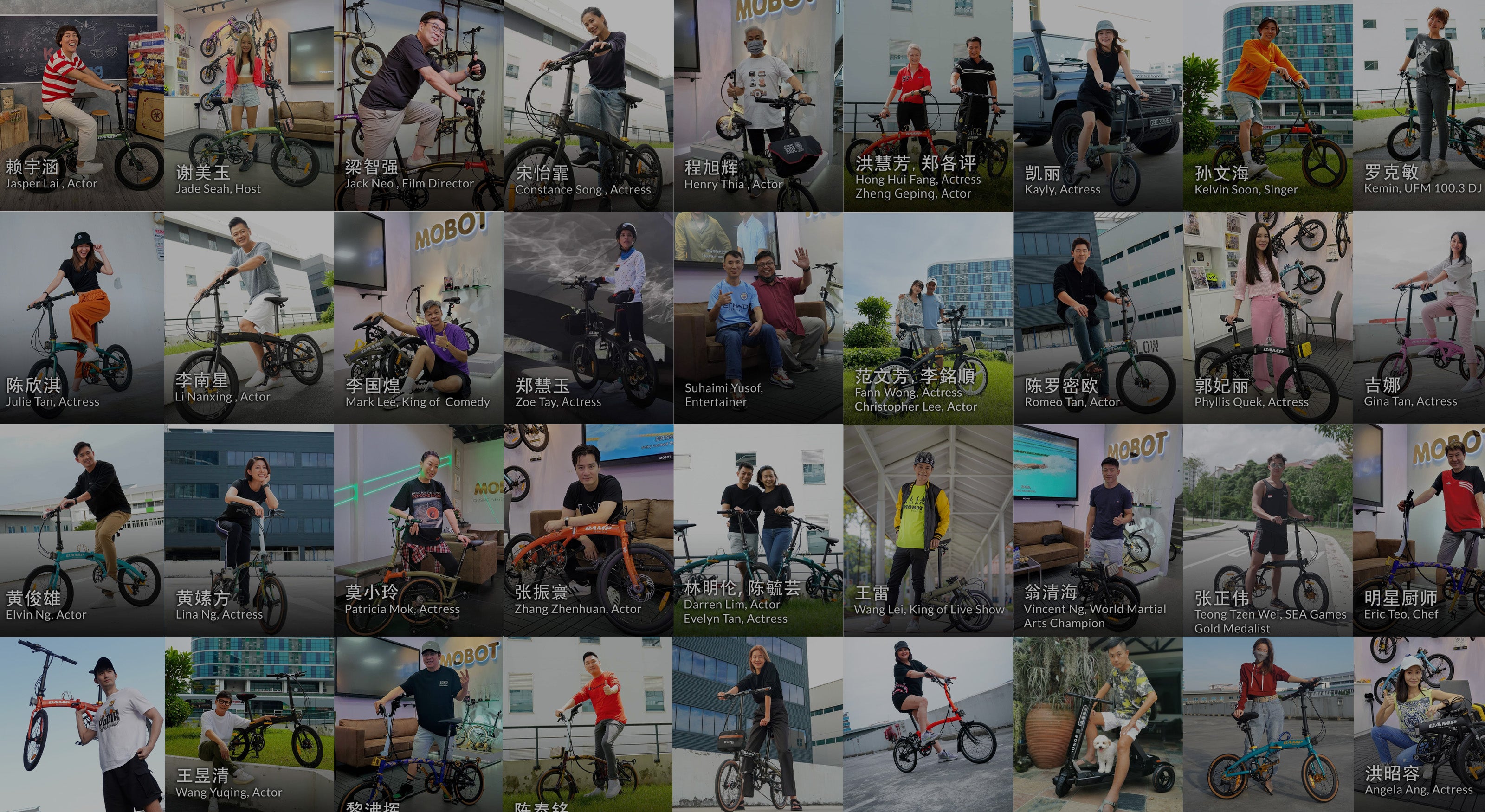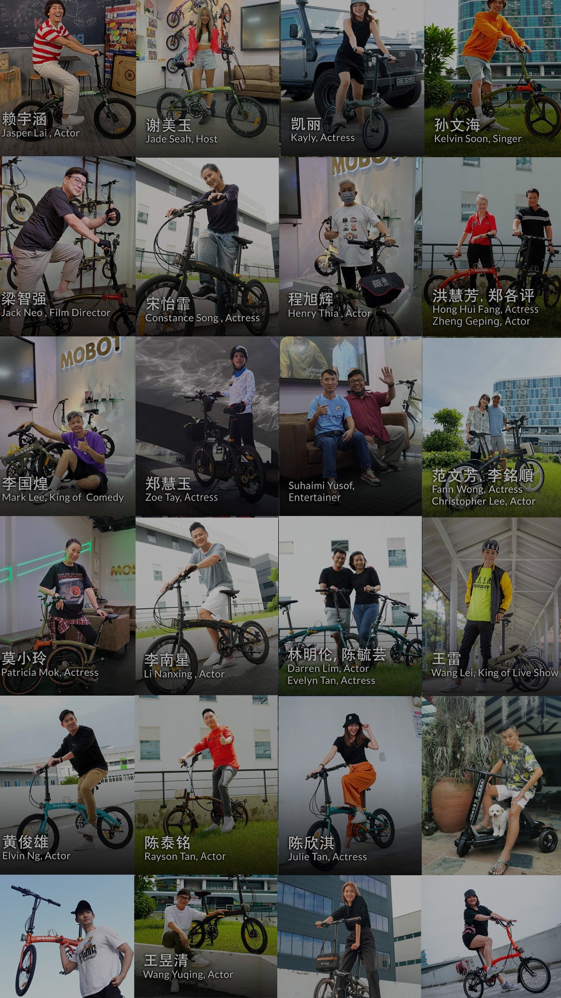 A glance at the Mobot website now shows local actors Zoe Tay, Fann Wong, Christopher Lee and other household names on Mobot bicycles.