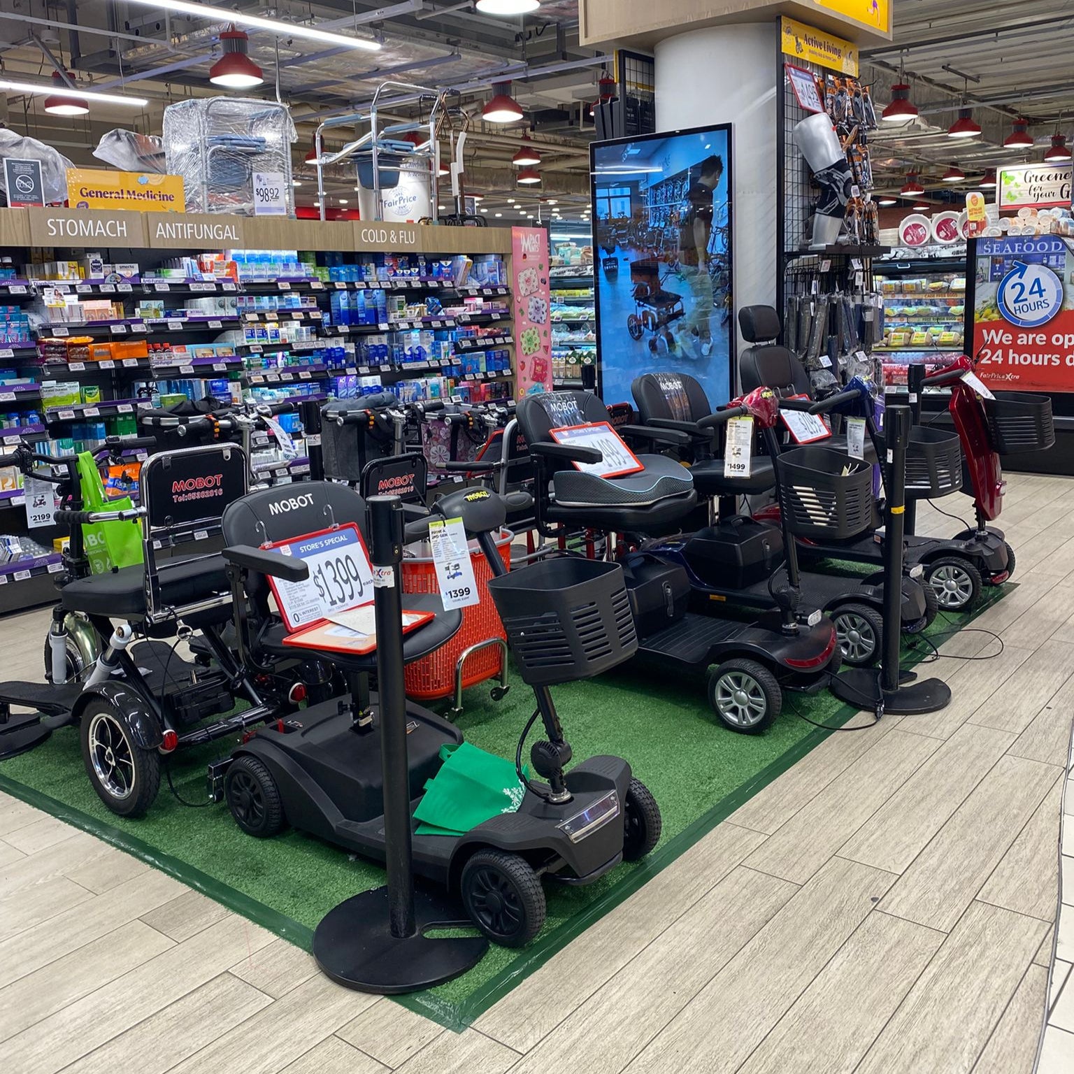 FairPrice, Unity, Guardian and OG pop-up locations will have only PMAs (mobility scooters and electric wheelchairs) on display. Click on each location for more details.