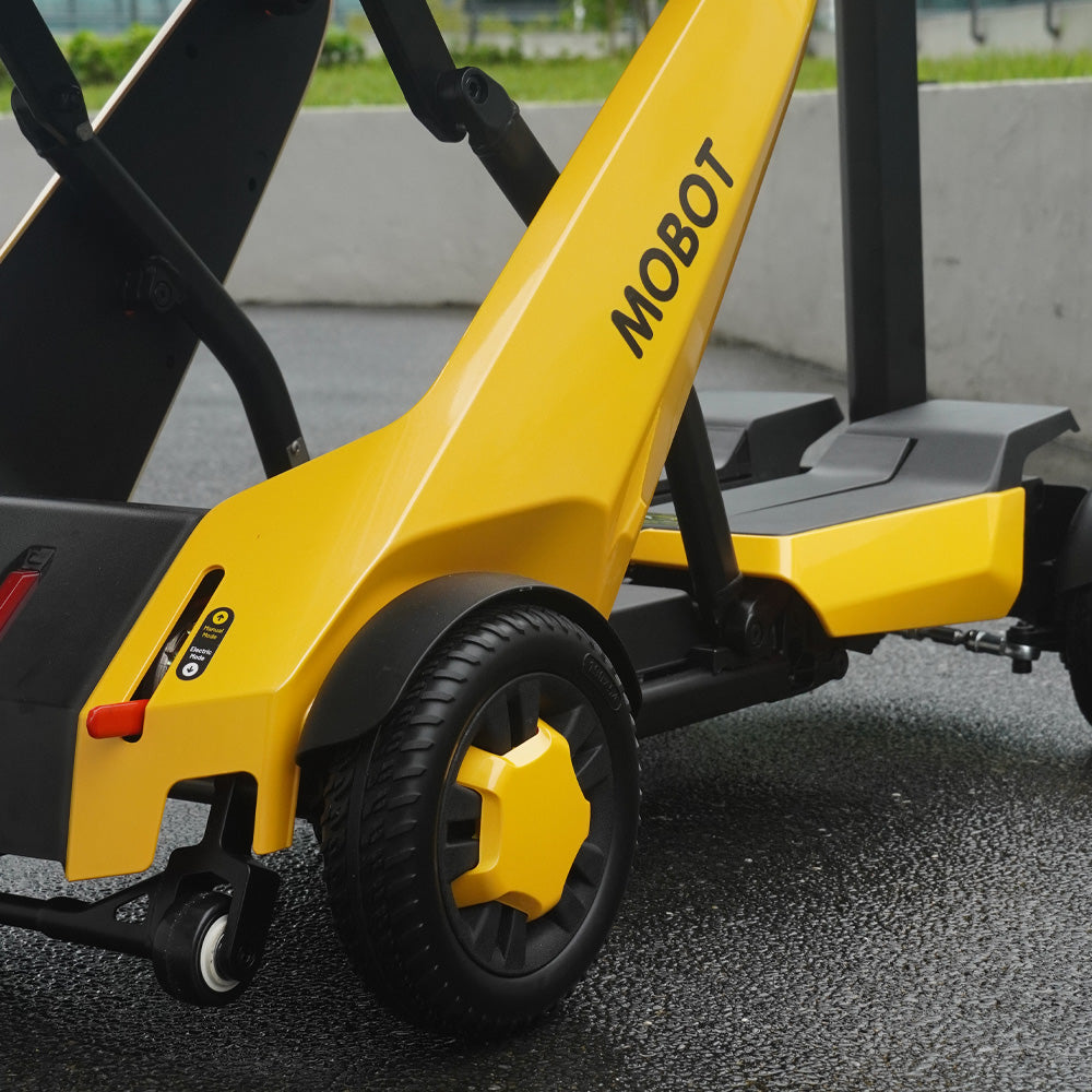- Effortlessly fold and unfold your scooter with a single press of a button on the remote control or the rear switch