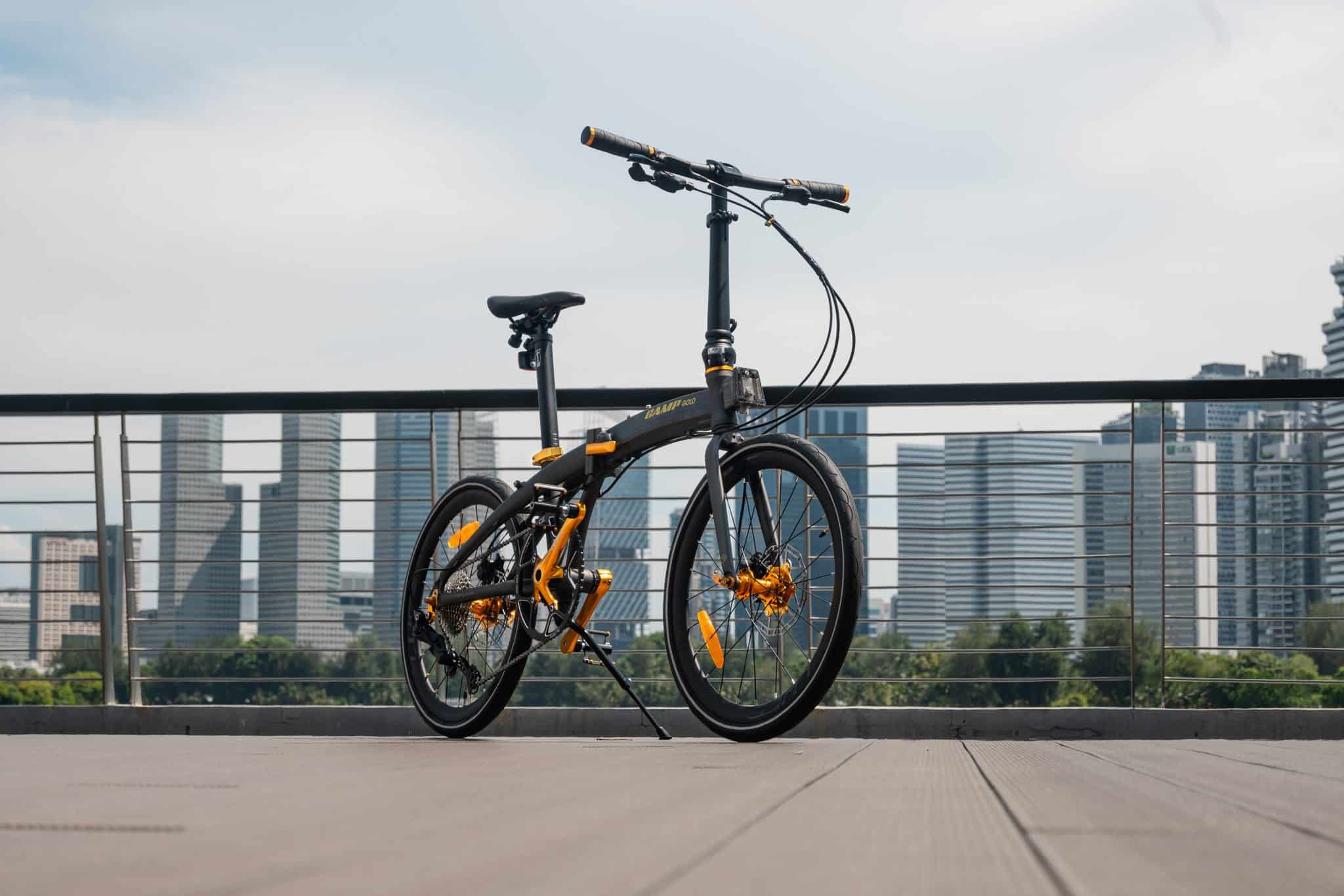 The CAMP Gold Sport is a lightweight, compact, and high-performance foldable bike, and the sports version of the popular CAMP Gold series. Featuring the world’s first integrated speedometer on the handlebar, it lets riders track their speed in real-time. Equipped with larger 37-451 tanwall tyres for improved speed, the bike’s frame is made from high-strength, corrosion-resistant CAMP Aluminum composite, ensuring a solid, lightweight ride. Plus, with front and rear TEKTRO hydraulic disc brakes, the CAMP Gold Sport delivers reliable stopping power for a smooth and dynamic cycling experience.