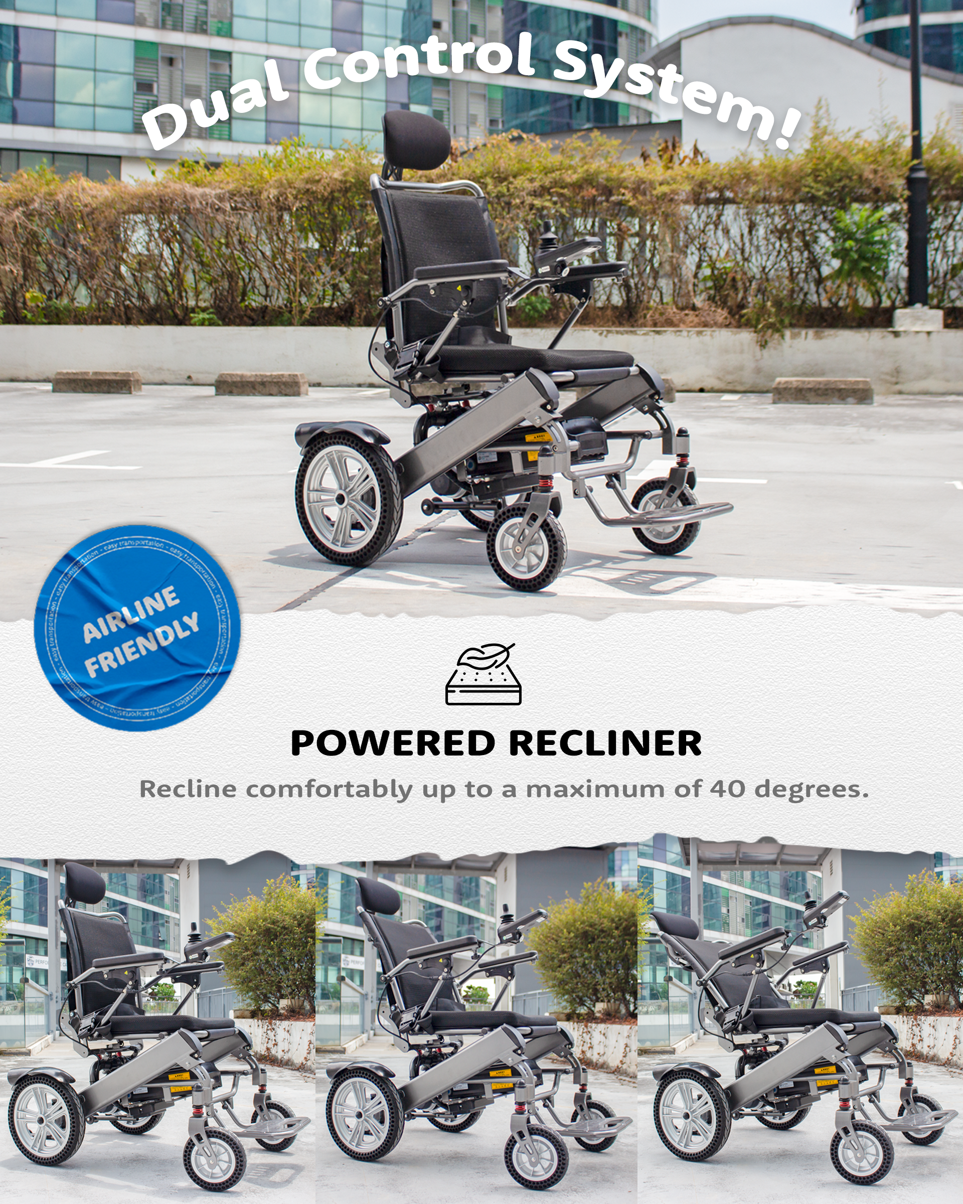MWHEEL RC: Reclinable, Foldable, Remote-Controlled Motorised Electric Wheelchair