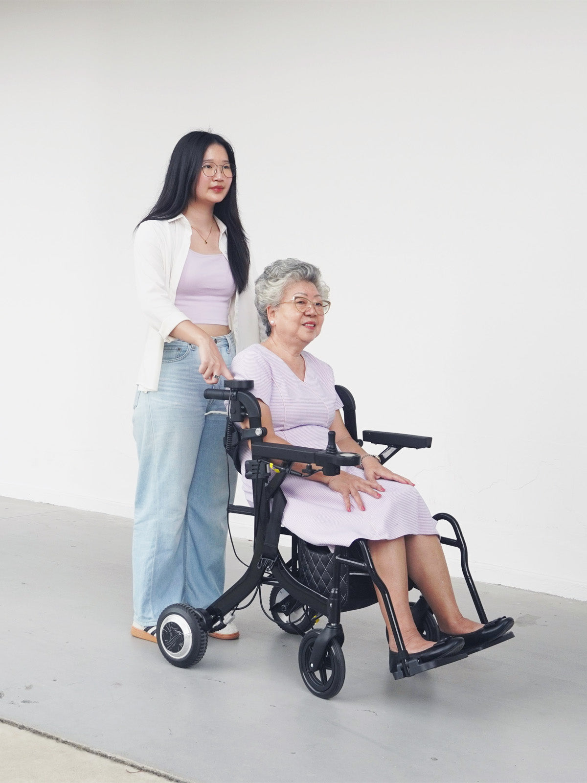 The dual controllers—push-handle and joystick—transform the MWHEEL Rollator into a true multitasker: