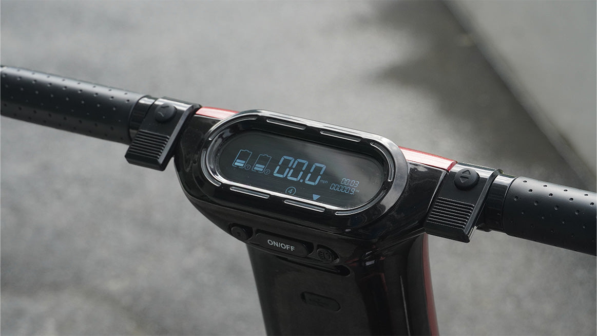 - Oversized LCD display shows speed, battery life, mileage, and time clearly