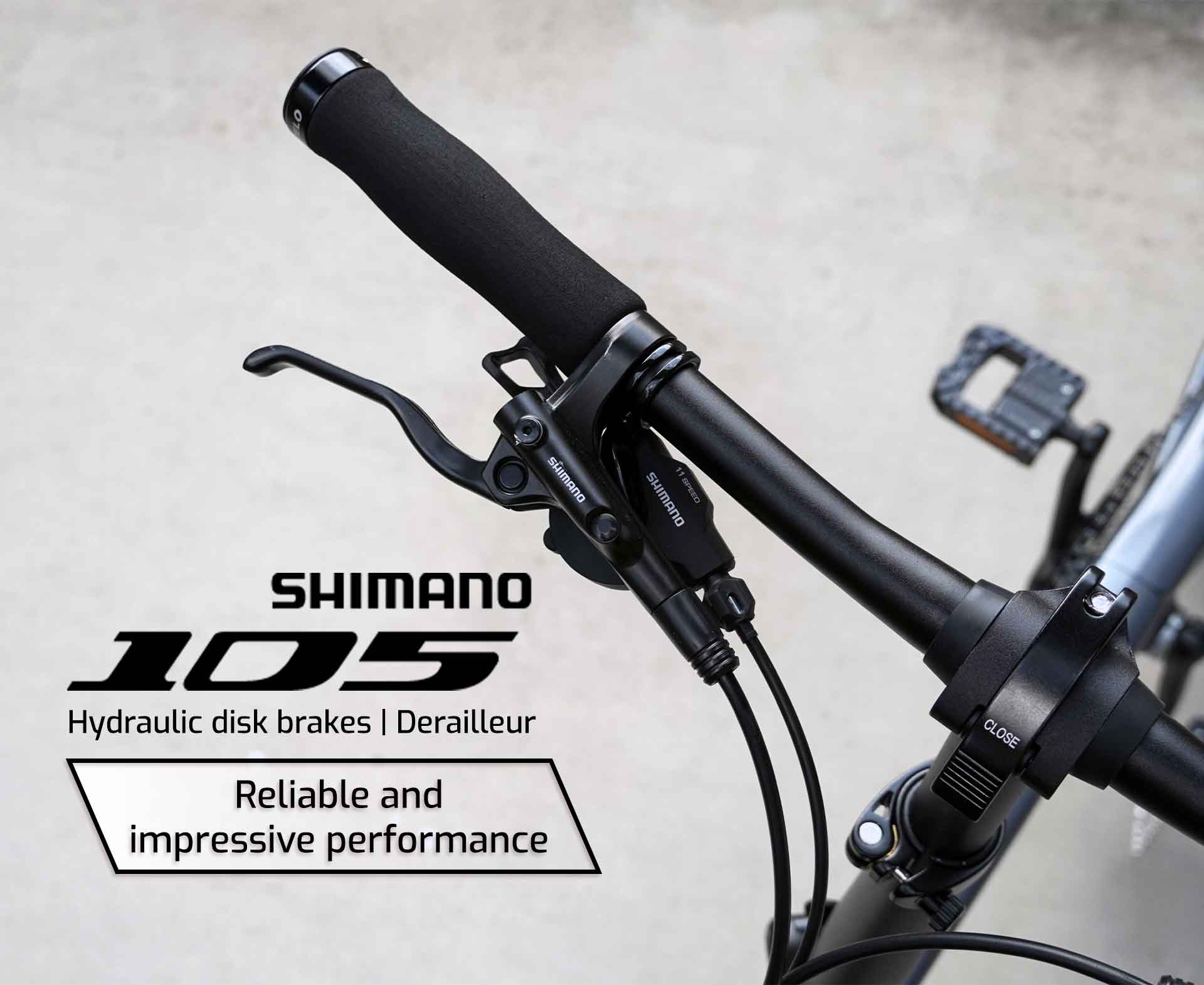 - SHIMANO 105 derailleur and shifter for crisp, reliable gear shifts.