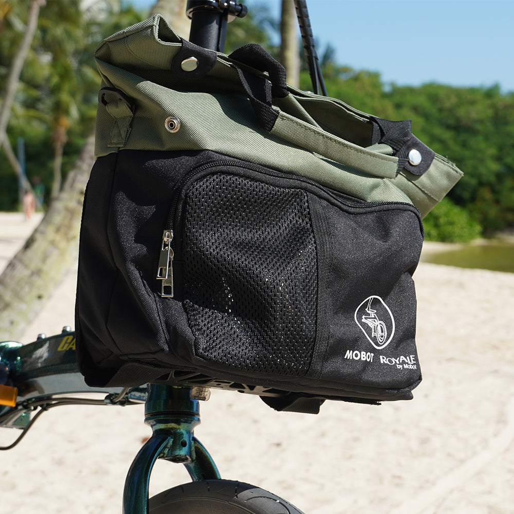 The ROYALE Tote Bag is a lightweight front-carrier accessory designed for everyday rides. Featuring a water-resistant exterior and quick-release mounting, it offers convenient storage for daily essentials while on the move. Easy to attach and remove, it’s ideal for commuting and short trips.