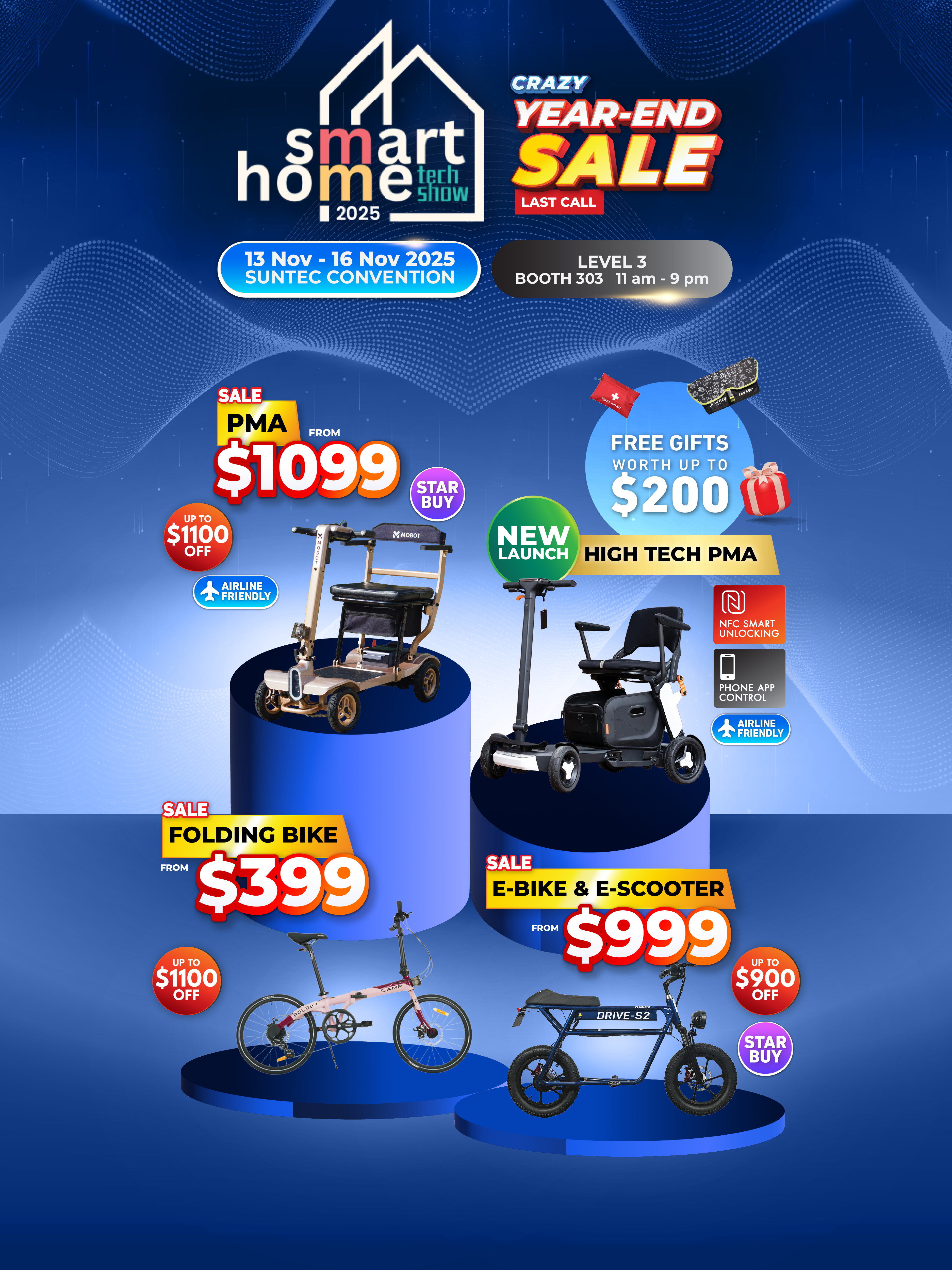 From 13th to 16th November, enjoy our exclusive Smart Home Tech Show Deals! With up to 50% off selected products, along with any CAMP foldable bicycle for an all-time low price of only $999!